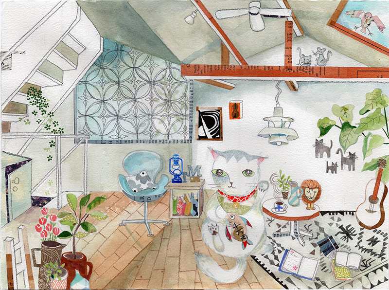 illustrations. Sara Ugolotti The combination of collage and pencil gives a lot of uniqueness to your work. Male Cuellar What's not to love about cats living human lives? Steve Argyle 右目の少し大きなネコのキャラクターが非常に独創的です。 増本大二郎 ネコのキャラクターが良い味を出している。 蟹江隆広 |