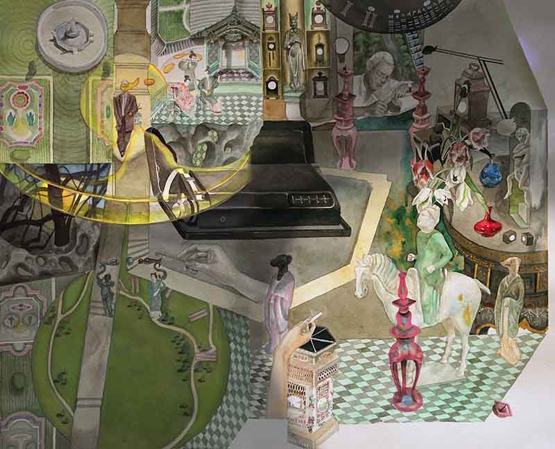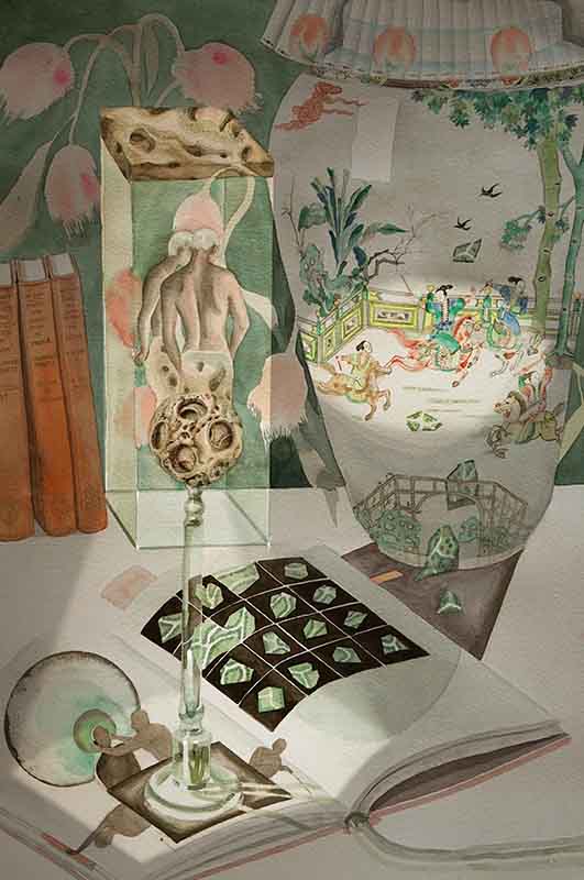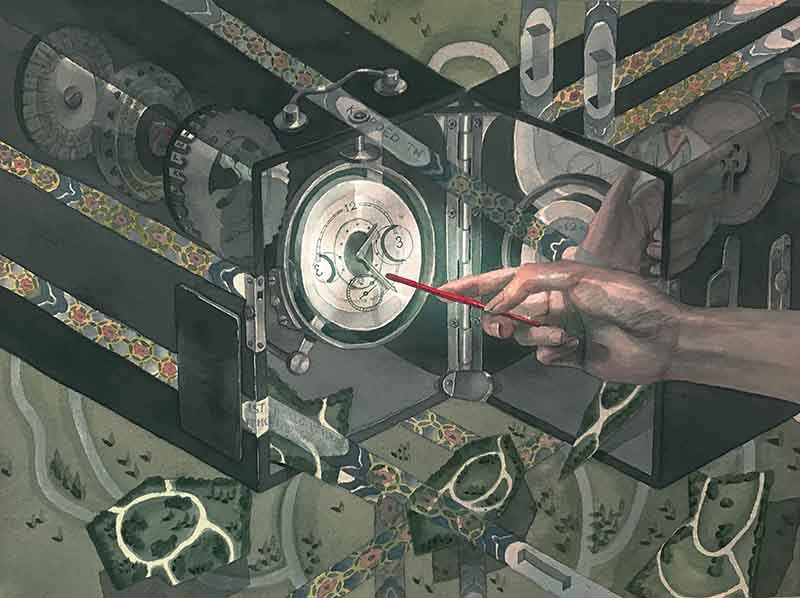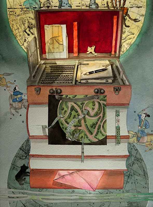 used art supplies or application softwatercolor on paper Artist commentsDescription: The illustrations are inspired by Jorge Luis Borges' novel The Garden of forking paths. |