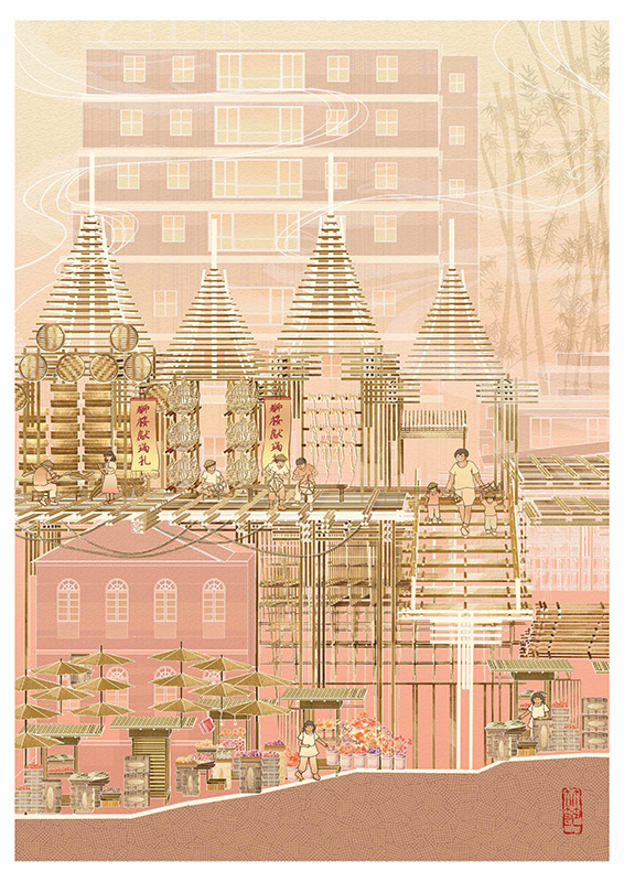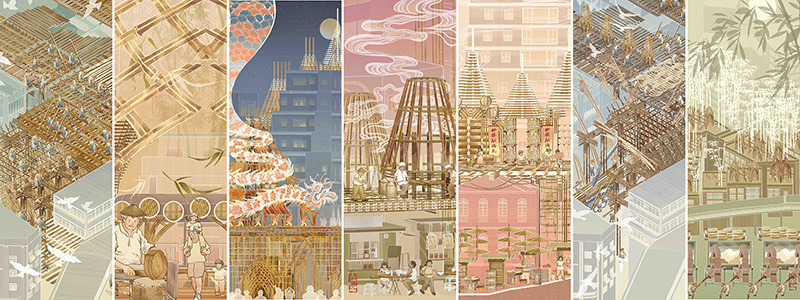 used art supplies or application soft3D Modeling, Hand-drawing, Digital Drawing Artist commentsIn response to the rapid urbanization of Hong Kong and the resulting loss of its cultural diversity, a Bamboo Craft Festival is designed with elevated bamboo platform and structures, creating a festival space for cultural heritage and craftsmanship celebration. |