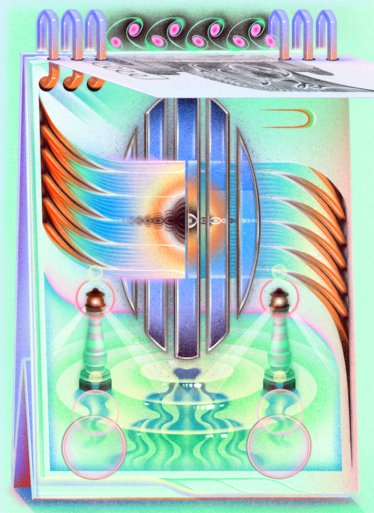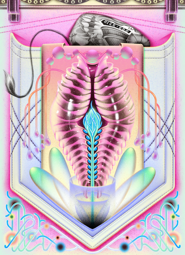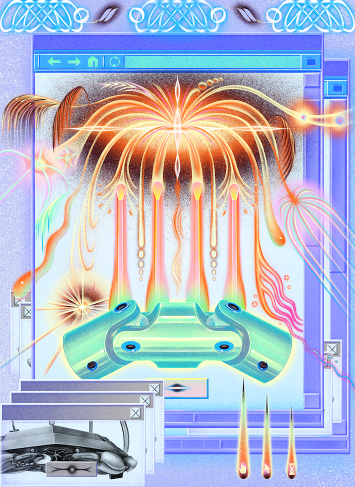審査員評If I did not know that these artworks were made recently, I would think that I was holding a catalog of vintage science fiction magazine covers. Surreal, unusual, but interesting and so masterfully done! Wenjing Yang touched on a very interesting topic. Means of communication as objects of worship of modern man. Indeed, a peculiar new cult has formed in recent years. Unknowingly, most of the people inhabiting the Earth turned out to be his followers. Who can do without a mobile phone now? And without a computer, too? We attach great importance to the means of communication, and we depend on them. Maybe it's time to think about it. Ekaterina Borodacheva I strongly believe that a good illustration doesn't have to be outstanding in every aspect, but this series, Apotheosis, really nailed it. Even the form language sells the strong aesthetic of a great harmony between complexity and order. The use of color palette and great compositions push the mystical theme to another level. Max Liu This series of works incorporates various technological elements. The main subjects are rendered in bright, vivid colors, while selectively placed black-and-white areas help emphasize the theme more clearly. Moon Q Wenjing Yang’s work takes an ambitious and risky approach by rejecting figuration entirely in favor of abstraction. This decision requires precision and clarity, which the artist achieves through rhythmic composition, spatial contrast, and a carefully calibrated neon palette. The visual language echoes elements of digital culture without relying on direct reference, allowing the concept of self-deification to surface gradually. The result is a controlled and visually assertive series that invites interpretation without prescribing it. Nadiia Zhelieznova The artist's neon-fluorescent colour scheme, combined with electromagnetic fluid-like dynamic texture, achieves a high degree of unity between visual expression and ideological core. The subtlety of the composition is unforgettable. Through the bstract visual language, the artist explores the concept of fetishism in modern society. I think this group of works is not only an aesthetic artifact and a conceptual carrier, but also an interactive field that can trigger the viewer's spiritual resonance - the gradient hues and flowing curves with a sense of granularity seem to be having a silent dialogue with everyone who stares at them. Yimin Wang |