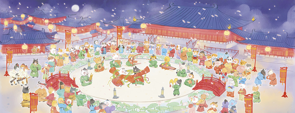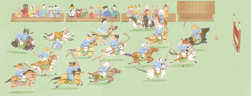 審査員評I have to admit that in book illustration, I have several favorite techniques. One such technique is multi-character compositions, where each character has their own unique purpose. I really like the works in which the artist does not unite all the secondary characters into a common faceless mass but instead gives each of them a special role and appearance. This is how, in my understanding, the artist's love for his creation is expressed. I was happy to find all this in the works of xie lv. And most of all I remember the emotions of the horses playing polo :) This is so wonderful! Ekaterina Borodacheva I like Xie’s use of color—fresh, see-through, with an overall bright tone—yet she also managed to create an ordered value hierarchy. A common phenomenon in this series is the presence of strong form language in each painting, such as symmetry and parallel structures. I wonder if she could break these dominant forms a bit more to introduce more variation. That said, I really enjoy watching Xie’s beautiful creativity. Max Liu The artist skillfully uses anthropomorphism of humans and animals, allowing viewers to easily identify the main character without disrupting the overall harmony of the composition. The design of each character’s costume, expression, and posture highlights their unique traits, inviting careful observation and appreciation. Moon Q Xie Lv’s work is structured around multi-figure compositions that reference narrative friezes or ceremonial scrolls. Characters are arranged in clear horizontal bands, echoing traditional storytelling formats while allowing space for individual actions and expressions. Despite the overall static framing, the artist creates a sense of movement through small gestures, rhythmic repetition, and implied storylines. The gentle rendering and uniform lighting unify the scenes into a warm, immersive world populated by soft-edged, expressive animal figures. Nadiia Zhelieznova The author uses cute, anthropomorphic animal figures as the main subjects of the picture, giving the characters distinctive personalities and dynamic vitality through rounded modelling and vivid portrayal of expression. The author uses soft and warm colours to create a joyful atmosphere of banquet, playing polo and celebrating festivals, providing viewers with a pleasant visual experience. Special attention is paid to the fact that in the composition of the first and second picture planes which draws on the characteristics of ancient Chinese figure paintings from the Tang dynasty, using flat spatial treatment to highlight the main figure. This demonstrates the author's research on traditional painting and her innovation in a contemporary context. Yimin Wang |