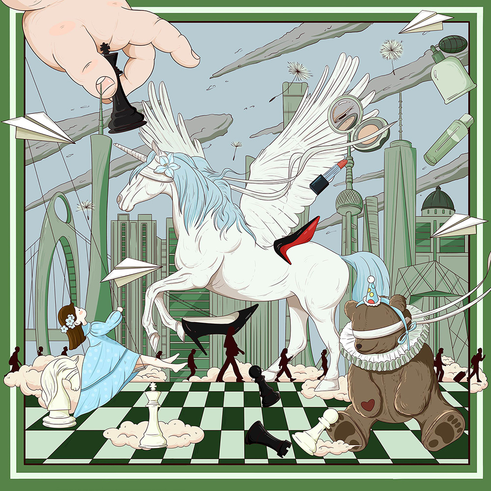 Judges' commentsTo me, Jie Liu's illustrations are like a meeting. I feel that through the artwork, the artist is telling a personal story. The images are full of details, memories, and symbolism. Events and emotions become artistic objects here, and the main character is the artist. Ekaterina Borodacheva These illustrations are whimsical and rich with narrative charm. Jie Liu’s compositions create a dreamlike space where childhood fantasy, nostalgia, and symbolism intertwine effortlessly. The balance of flat color, crisp linework, and surreal elements brings a polished, storybook aesthetic. I particularly appreciate how each piece is dense with visual motifs, yet still readable. Max Liu The artist has created a dreamy and sweet fairytale world. Familiar characters from well-known fairy tales can be found throughout the work, reimagined and seamlessly woven into the artist’s own creations. This invites the viewer to journey back to their own childhood, recalling the times spent reading fairy tales. The square composition further enhances the storybook-like atmosphere. Moon Q Jie Liu’s work constructs a layered narrative world that combines nostalgic fantasy with subtle satire. The square compositions and frame-like structures give each image the feel of a stage or diorama, while precise linework and soft color palettes balance clarity with dreamlike softness. Recurring characters and symbols — carousel, chessboard, teddy bear — create thematic continuity and invite viewers to decode emotional subtexts beneath the decorative surface. The result is a playful yet thoughtful exploration of memory, control, and childhood imagination. Nadiia Zhelieznova This series of works is characterised by the artist's integration of her personal life experiences into the pieces. This gives broad thematic motifs such as 'longing, fantasy, childlike innocence and friendship' a personalised internal expression. The seemingly fragmented visual narrative is organically synthesised through the deliberate arrangement of symbolic elements. The interspersing of key elements that move in and out of the pictorial frame evokes a sense of multidimensional engagement. This approach transcends conventional barriers, enabling a profound, soulful dialogue between viewer and artist. Yimin Wang |