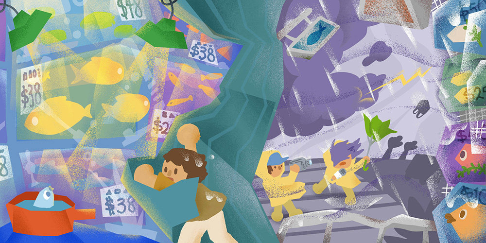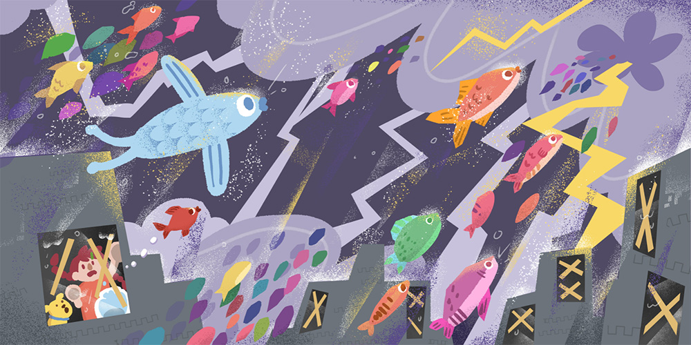 Judges' commentsThe series of illustrations by KS represents a journey from storm to serenity. From thunder and flashing lightning to a rainbow against a blue sky. From struggle to peace. If you slow down for a minute and sit in silence, flipping through the artworks in order, like a slide show, a deep philosophical subtext will be revealed to you. At first, the viewer is distracted by the dynamics of the plots, the richness of the compositions, and the diversity of shades. And only then does he notice all the symbolism of what is happening. Ekaterina Borodacheva Charming and smart, just tighten shape clarity. First three pieces are too busy—could use a clearer form structure and better element placement to guide the eye. Max Liu This piece evokes an imaginative response to a storm. While storms may seem dangerous to humans, for the "fish," they become a beautiful journey. In image 3, the movement and expressions of the fish are especially vivid and full of energy. The overall color palette is bright and cheerful, showcasing the artist’s rich imagination and expressive skills. Moon Q Kam Ian Sio’s work bursts with playful energy and visual rhythm. Through simplified forms, grainy textures, and bright contrasts, the artist creates a whimsical world where storytelling flows from one panel to the next like a continuous wave. The balance between abstract weather patterns and humorous character reactions gives the narrative an animated feel, blending tension with optimism. Despite the naïve style, the work shows precise control of composition and timing, offering a clever and uplifting visual sequence. Nadiia Zhelieznova The artist captures the fleeting transformations of nature through the innocent eyes of a child, composing a dynamic symphony of an approaching storm on the canvas: swaying streetlights, disheveled hair of pedestrians, plastic bags whirling in the wind, and fish-like raindrops spiraling through lightning and dark clouds—all coalescing into an intense sense of ambience. KS masterfully employs the artistic language of synaesthesia, vividly engaging the audience's visual, auditory, and tactile senses. This extraordinary immersive experience leaves a profound impression on me. Yimin Wang |