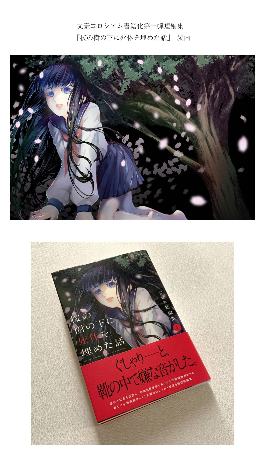 The name of the client株式会社ウエトマエ The media in which the illustration used小説の書籍表紙 Artist's comments株式会社ウエトマエ様の展開する文豪コロシアムから、新レーベル「文コロノベルズ」の書籍化第一弾として、短編集「桜の樹の下に死体を埋めた話」の表紙イラストを制作しました。 I created the cover illustration for the short story collection "The Story of Burying a Corpse Under the Cherry Tree," the first book to be released by Bungo Coliseum, a new label "Bunkoro Novels" developed by Uetomae Co., Ltd. |