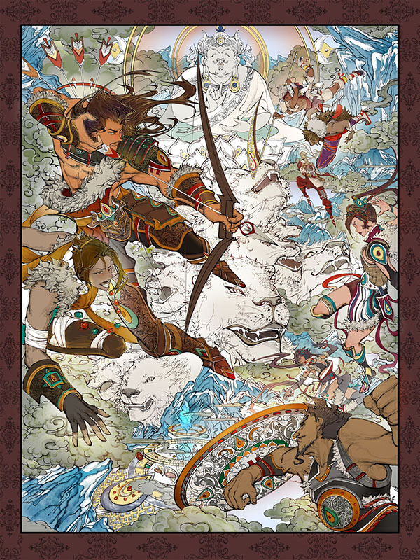used art supplies or application softCSP Artist commentsThe theme of this creation is the Chinese Tibetan hero epic "King Gesar", and the illustrations revolve around four epic stories: "Horse Racing King", "Snow Mountain Crystal Gang", "Hell Saves Wife", and "Three Realms of Stability". |