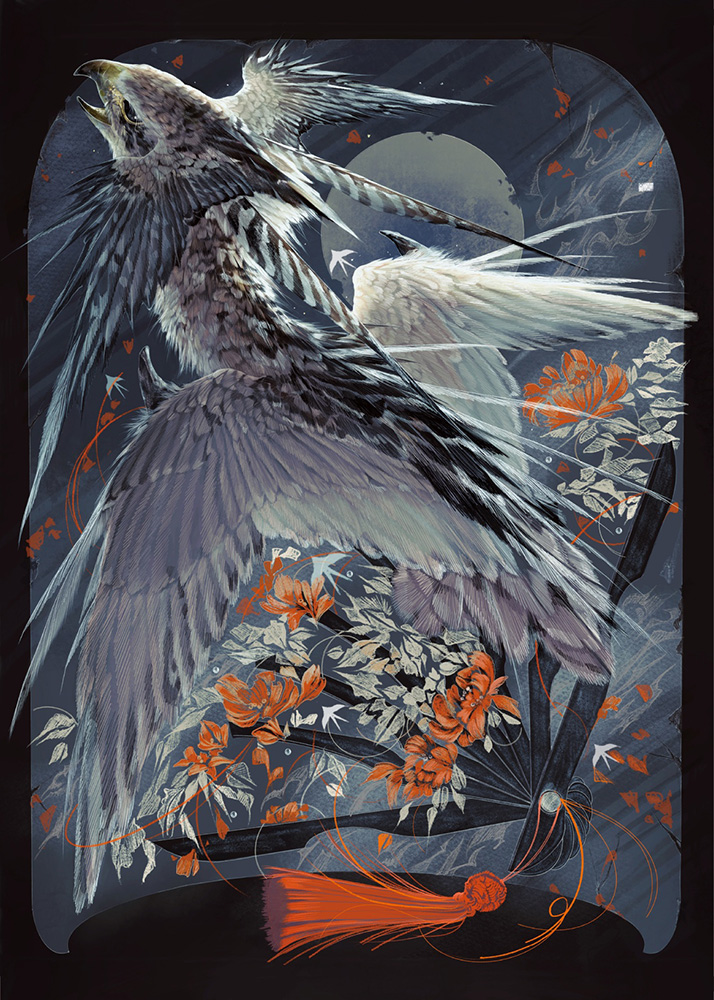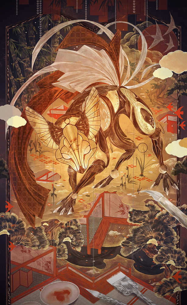 審査員評Koss's depictions of animals are incredibly detailed and lifelike. The use of traditional Asian painting styles is executed beautifully. Each animal is rendered with meticulous attention to detail, capturing their essence and bringing them to life on the canvas. Koss's skillful application of traditional techniques adds a layer of authenticity and depth to the work, making it both visually striking and culturally rich. Van Li With its dramatic composition and distinctive shape language, the artwork effectively depicts each fantastical animal. Haimeng Cao The contrast between the graphic background elements and the realistically drawn animals creates a captivating visual effect. The details of the animals highlight Koss's technical skill, and the use of traditional patterns in the background adds a unique layer to the composition. The gestures of each fantasy creatures are also great. Rita Yuwei Li Incredible shaded technique for both shadows and lights, which is perfect for the plumage and details such as the flowers and brushes in "Chiuwa Lee 5". In addition, that same richness of detail creates directions that enhance the movement of the creatures, such as the hair of the head of the creature in "Chiuwa Lee 1", increasing the dynamic impact of the work, along with the diagonal breaks in the background. A very elegant domain of his compositions, each element appears in harmony, and each work has its own way of being framed. Beautiful work by Koss, the only detail that I feel excessive is in "Chiuwa Lee 5", in the creature's orange "fabric-tail", a transparent mesh texture was given on top, which does not respect the curves of the fabric-tail and the work loses coherence. Having so much talent for making shadows, the details of the fabric-tail lose their strength with that on top, it is forced, it hides the details and causes distance, when the details should invite the contemplative approach of the artist's skill. Lucas León The works have a very strong visual impact. The artist is good at depicting imaginary animals, which look very solemn and vivid. The depiction of their feathers and muscles is very accurate and impressive. PINGNAN LU |