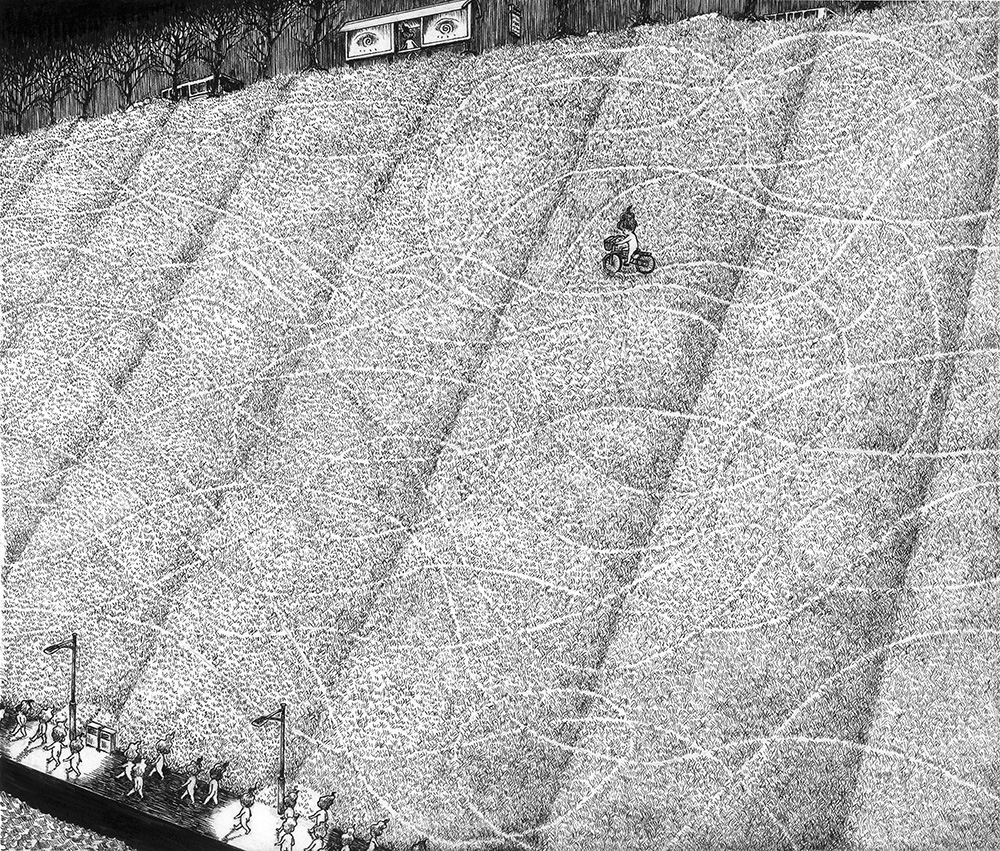 used art supplies or application softneedle pen Artist's commentsThe original work of No Man's Land was hand-drew on a long grid-like scroll,17x19cm each. The “land” presented in each individual drawings is related to the events or thoughts I experienced at that moment. Drawing lines is my way of remembering and thinking. Children in my work who will never grow up to "men" are the longest-lasting residents. Their appearance and disappearance, like the stimulation brought by the things around me, are fragmented, but they form continuous memories. |