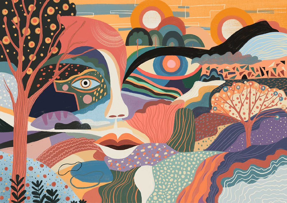 審査員評These paintings are so beautiful! The mix of nature and human elements is smooth and well combined, creating a harmonious blend. The colors evoke a mysterious feeling, drawing you into each scene. The use of dots, lines, and space is just on point, showcasing the artist's deep understanding of graphic design and the exceptional skills. Each element is thoughtfully placed, contributing to the overall composition in a way that feels both natural and deliberate. Van Li The bold use of colors is a standout feature of the artwork. Environmental elements and human faces are intricately intertwined, expressing their inseparable relationship. Haimeng Cao Yilin's vibrant color and compositions truly invite viewers into a meditative state, reflecting on self-awareness and harmony. In each illustration, the human face blend in with nature in a smart abstract way. The series are a profound exploration of the human-nature connection. Rita Yuwei Li It is like the landscape of a meditation, the spiritual image of breathing, and what it allows to be and pass by. Impeccable use of bright and dark colors in harmony, attributable to the state of non-duality of a meditation. With some of the psychedelic spirit of the 70s, the artist creates dynamic landscapes full of vitality. Lucas León Beautiful colors, and striking landscape depiction. The abstract design of the human face integrates seamlessly with nature, fitting the theme very well. PINGNAN LU |