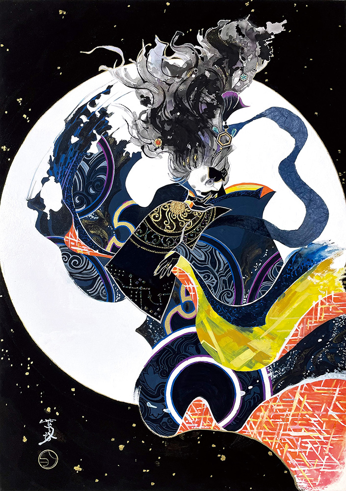 used art supplies or application softPoster color, Acryl gouache, Indian ink Artist's commentsIt's a stage about a girl travels through time and space. She opens the folk story. Her honest feelings become costume fluttering anywhere. |