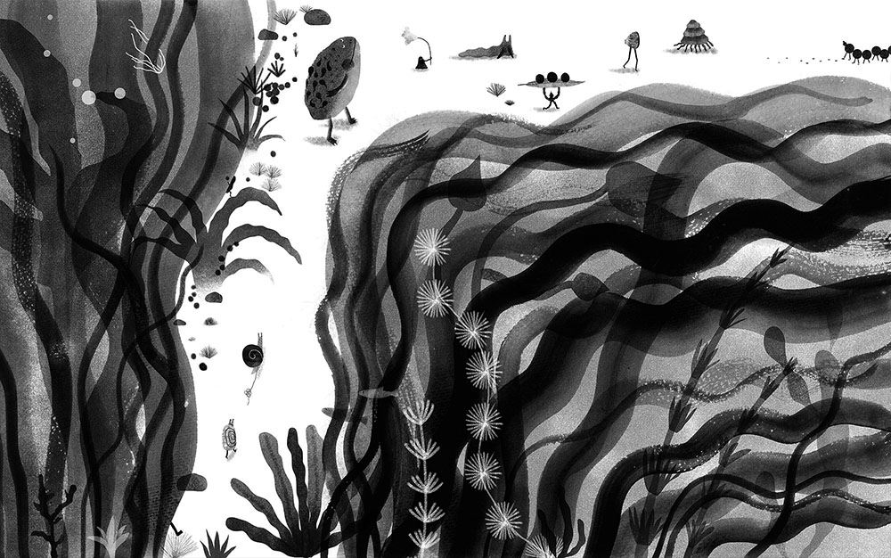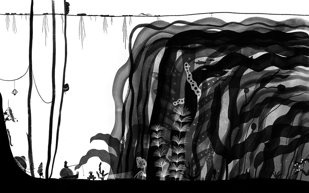 審査員評The artwork feels both graceful and dynamic, with the use of curves perfectly suited to the theme. The flowing lines add a sense of movement and elegance, enhancing the overall composition. The inclusion of small details invites the viewer to look closer and appreciate the intricacies of the piece. These subtle elements contribute to the charm and richness of the artwork, making it a delightful experience to explore every part of the painting. Van Li The illustration series presents a thoughtful idea, and despite its simple yet charming graphic style, a closer look reveals many captivating details making it interesting to examine all the residents of the pond and their activities. Haimeng Cao JamDong only using black and white, and contrast of shapes and textures to illustrate this story is very impressive. The illustrations are a delightful depiction of cycle of life. Great work! Rita Yuwei Li Beautiful and elegant aesthetics, great skill of strokes, watercolors and their transparencies. The immensity of the nature that these characters inhabit is interesting. At times it seems like a microscopic scene, as if we were examining a drop of JamDong ink under a microscope, and you can see these landscapes through the lens. He used a similar viewing distance and perspective for all the works, that generates continuity from one work to another, as if we were playing an indie PC game, where you walk to the right with one of his characters, and you go through different scenes of the same universe. This is achieved because the artist has good congruence and its style is very strong. Lucas León The textures generated by the combination of various media are very beautiful, and upon closer inspection, the character designs are also very exquisite and cute. Different small stories are happening in various corners of the artwork. A very impressive set of works. PINGNAN LU |