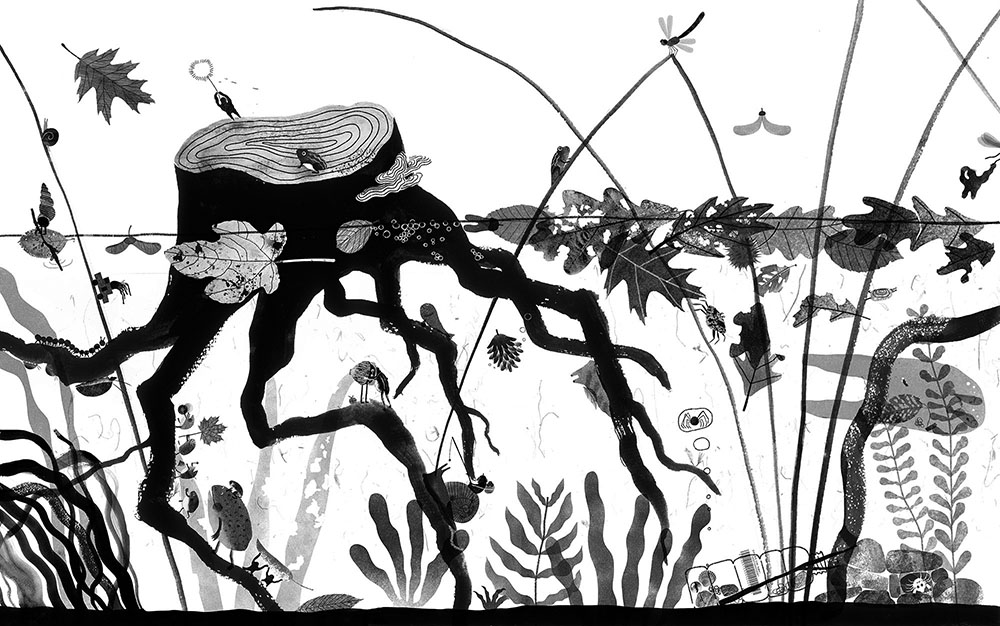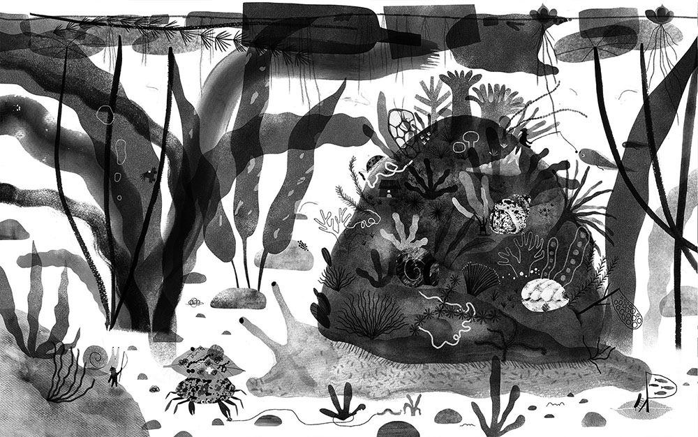 used art supplies or application softwatercolor/collage/pencil/digital Artist's commentsLittle Pond tells a story about the cycle of life: every spring, the residents return to this aquatic micro-world. They grow plants, harvest, and celebrate together. When autumn comes, they say goodbye to each other and look forward to the reunion next year. |