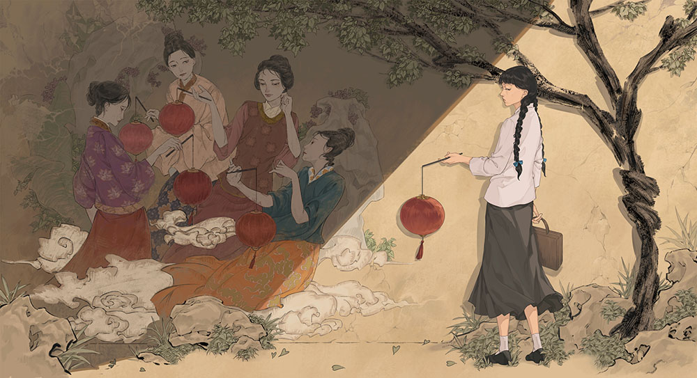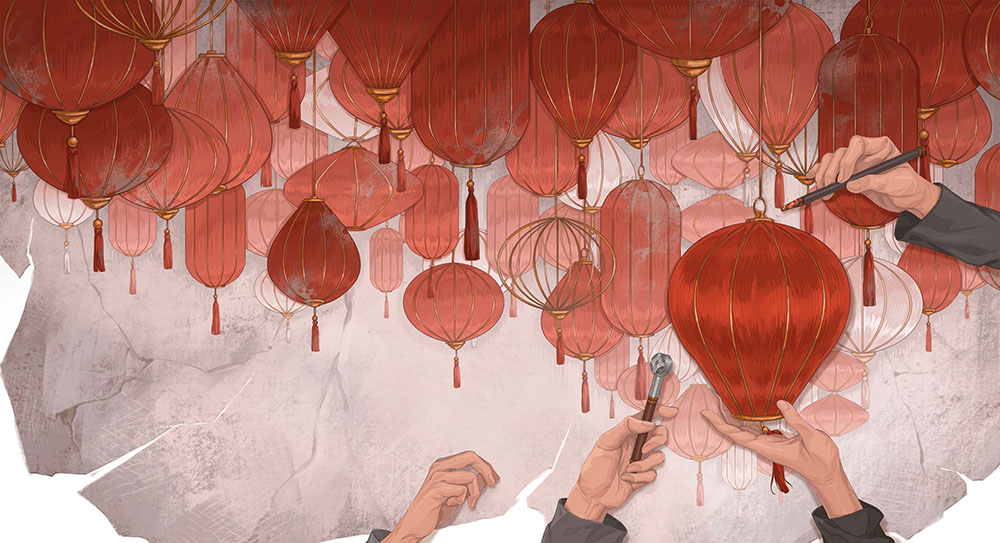 used art supplies or application softDigital Artist's commentsRed lantern is a series inspired by the film "Raise the Red Lantern." In ancient China, the color red symbolized joy, and the red elements running through the painting represent both the women's hopes and their misfortunes. In that era, women were deprived of autonomy and spent their lives being chosen by their father, husband and son. |