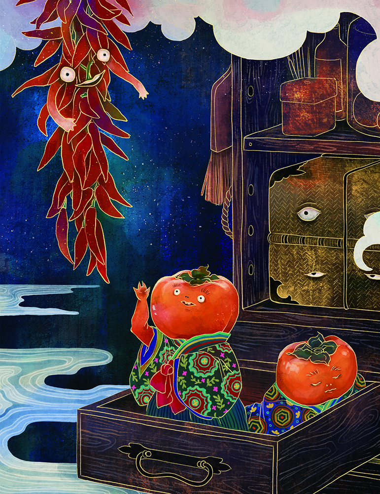 used art supplies or application softProcreate / Photoshop Artist's commentsThis painting series, a collaboration with Feng Yi-Gang from Taiwan's Comedians Workshop, includes five pieces from fourteen. They tell "A Nightmare of Xiqi." In the series, a resident of an ancient Taiwanese city dreams of visiting his father's birthplace, Chang'an. The paintings show food and wine from Chang'an turning into monsters. The dreamer wonders how he dreams of memories he never had, expressing emotions of family, homeland, and culture through vivid, hallucinatory art. |