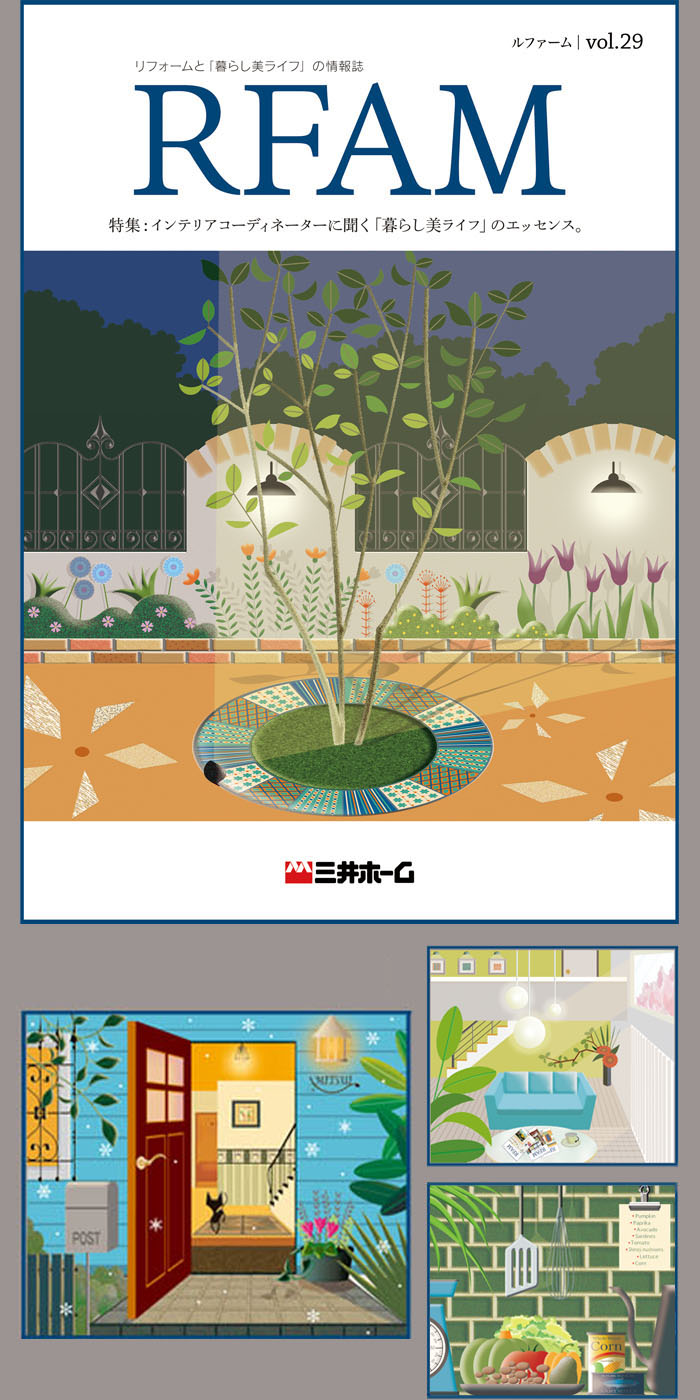繊細で彩りの多いイラストレーションが「リフォームした暮らし」=「豊かな住みやすさ」をうまく表現していると思います。