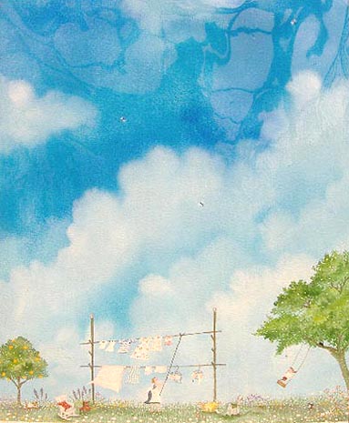 気持ちのいい晴の日に日常的なしあわせが描かれているのでしょうか。