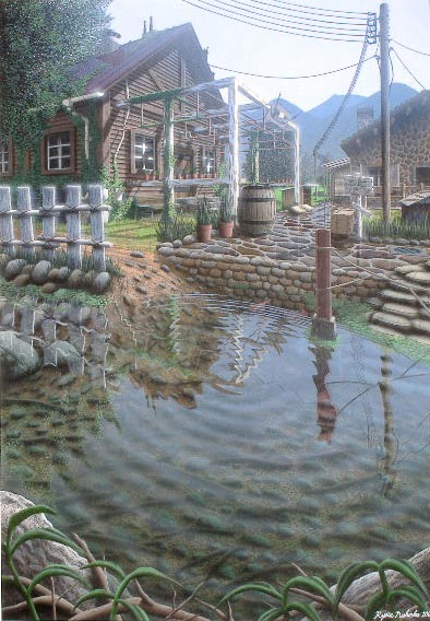 まず技術がとてもしっかりしている、プロの技術にも負けない作品。 色使いはどの作品も抑えていて、静かで落ち着いた雰囲気を出している。 最近の軽いイラストが多い中で、珍しく重みのある作品である。 蟹江 隆広 |