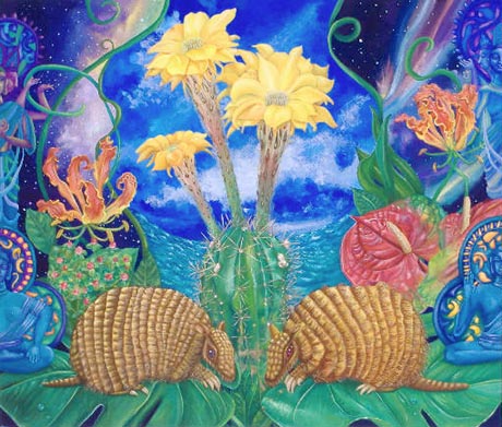 左右対称的な構図、海、空、宇宙に仏像、よく分からないけど不思議な感じです。