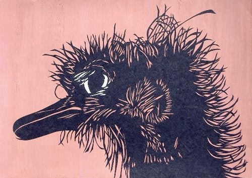ゾウ、フラミンゴ、そしてこのダチョウの3点連作です。