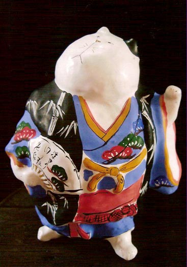 かわいくない猫のキャラクター、これが見なれてくるとだんだんかわいく見えてくるのでしょう。 形がいびつでデコボコ、塗りもおおざっぱ、でもこんなところに手作りの良さがあるんだよね。 これが一点だけの出品だったら、ちょっと弱かった。 5点連作ということで、印象に強く残った。 蟹江 隆広 |