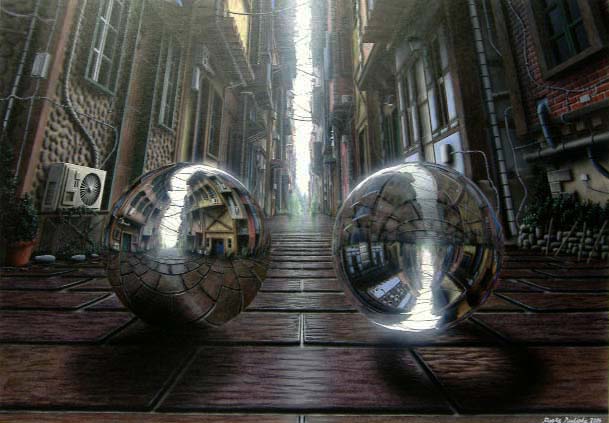 不可思議な球体に映り込んだ細密な風景に、思わず引き込まれます。 大橋 紀子 |
