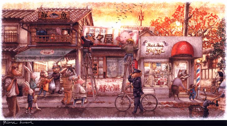 すべての作品において、記憶か夢か、深〜いところから湧いてくるような世界観が、一瞬で人を捕らえる魅力に溢れています。 善養寺ススム 擬人化した動物の町の一コマ。 芦田麻有美 昭和のノスタルジックな人情溢れる町の様子を、人でなく動物で見事に描き上げているところ、お店も動物にリンクしている点など面白い。 立澤 あさみ 卯田町日記〜おかあちゃんと喧嘩した夏〜 4 絵も内容もとても優しさを感じた作品。 聖〜Mina〜 懐かしい昭和30年代頃の街角の風景。 蟹江 隆広 |