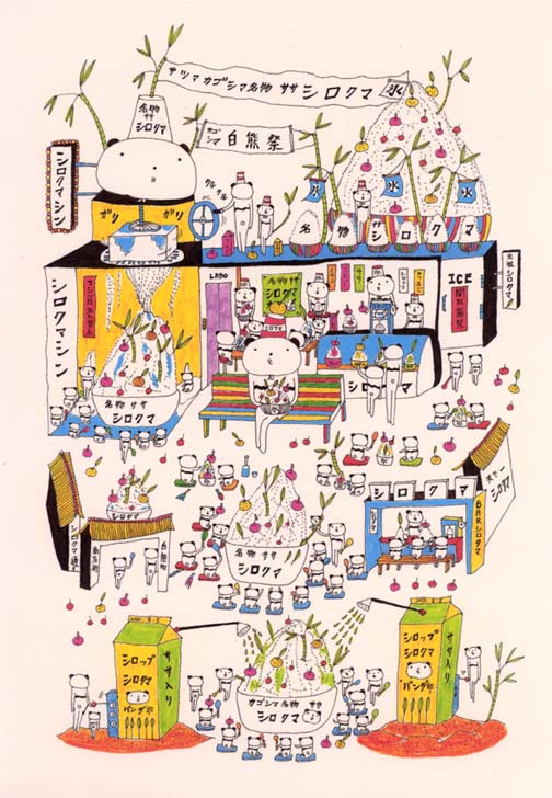 キャラクター、カラー、世界観、すべてに抜群のセンスが光ります。 善養寺ススム パンダの楽園を表現したおもしろおかしい構図に惹かれる。雑誌に掲載されているかのような完成度の高いイラスト作品。 芦田麻有美 |
