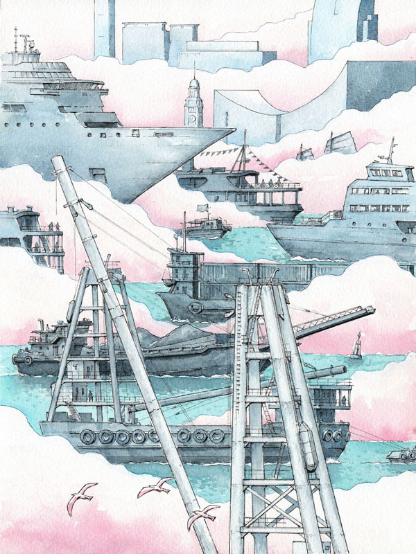 審査員評船が一隻一隻丁寧に描かれており、人が乗っている様子などから丁寧な仕事だと思いました。 長尾 洋平 繊細な筆致と奥行の端正さが調和していると思います。 芦田 麻有美 あっさり感がなかなか良い。 朝山 隆 ホンコンからの出品。 蟹江 隆広 |