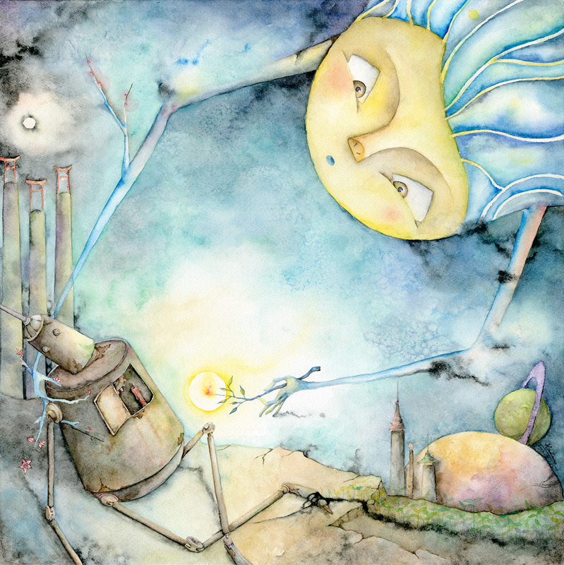 審査員評「灯」の方が好きです。 ロボットの中の蝋燭に火をつけようとしているところね。色の感じ墨の感じがとても好きです。 佐藤 比路志(デザイナー) 独特の世界観があり、色使いにも個性を感じます。 蟹江 隆広(日本イラストレーター協会会長) |