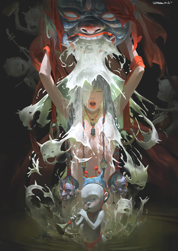 審査員評日本のアニメのような独特の世界観。 大西信之(画家) 幻想的な描写、リアルなタッチがひとつひとつの作品に物語を紡ぎ出しているかのような作品です。 ファンタジックな小説や幻想的なキャラクター設定の写真集などを出版しても十分通用する作品になっていると思います。 上島秀幸 (ブラス出版) ひとつひとつの作品に、光と影の繊細さを感じます。 丁寧な光の表現によるそれぞれの質感が作品に奥行きとキャラクターそれぞれの表情をうまく表現できています。 改めて光と影よる構成力に引き込まれました。 溝口真一(株式会社 ビットウィン 所長) 審査の時点でバランスのとれた構図や白の表現の多彩さに注目しておりました。 まずはグランプリおめでとうございます。 長尾洋平 (RoughStone 代表) マレーシアの作家です。 蟹江隆広(日本イラストレーター協会 会長) |