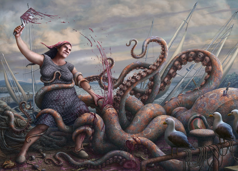 審査員評ミゲルさん。 大西信之(画家) 「神話」や「ジブリ作品」などを思い起こさせる「幻想イラスト」。 色使いや構図はやわらかく、かつインパクトさもある作品で、出版物としても十分通用するイラストだと思います 上島秀幸 (ブラス出版) タコの刺身が好きな私には、なんともたまりません。 溝口真一(株式会社 ビットウィン 所長) 絵の細部まで細かく描かれており、どこまで見ても深く描かれた作品で、作品を細部まで楽しませていただきました。 長尾洋平 (RoughStone 代表) スペインの作家です。 船が朽ちて村?になっている。 化け物のようなタコを調理しようと格闘するおばさん。 発想が豊かで素晴らしい作品です。 蟹江隆広(日本イラストレーター協会 会長) |