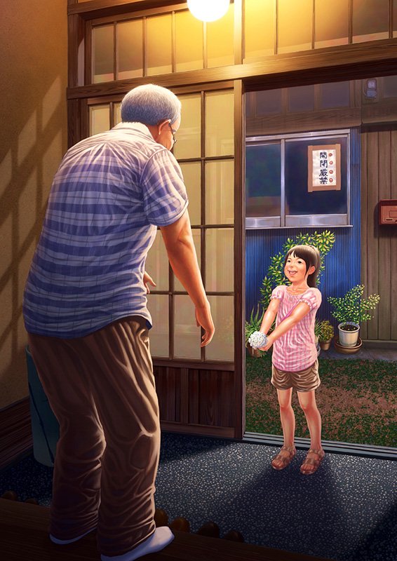 審査員評鮮やかな色使い。 大谷 佳久(IT企業代表) 鮮明的色彩融入光影變化帶出故事,第三者視點的構圖讓人像是在作品中參與一段故事,非常讓人印象深刻。 Liu ray lung(アジアイラストレーター協会会長) 日常の時間を切り取った感のあるイラストは、光のコントラストを大切にしながら、どこか昭和のよき時代にタイムスリップしたような、心温まるストーリー性を持った作品です。 竹島 淳一(デザイン会社代表) 正確なパース、細部へのこだわりが分かる“写真を絵にした様な”完成度の高い作品。 被写界深度の使い方も上手い。 五十嵐 洋(クリエイティブディレクター) いつもながら丁寧な描き込みに感心します。 画面全てを同じ調子で描き込まず、抜くところがあってもいいのかなと思います。 蟹江隆広(日本イラストレーター協会 会長) |