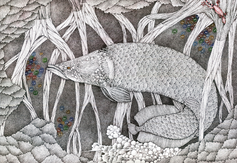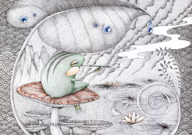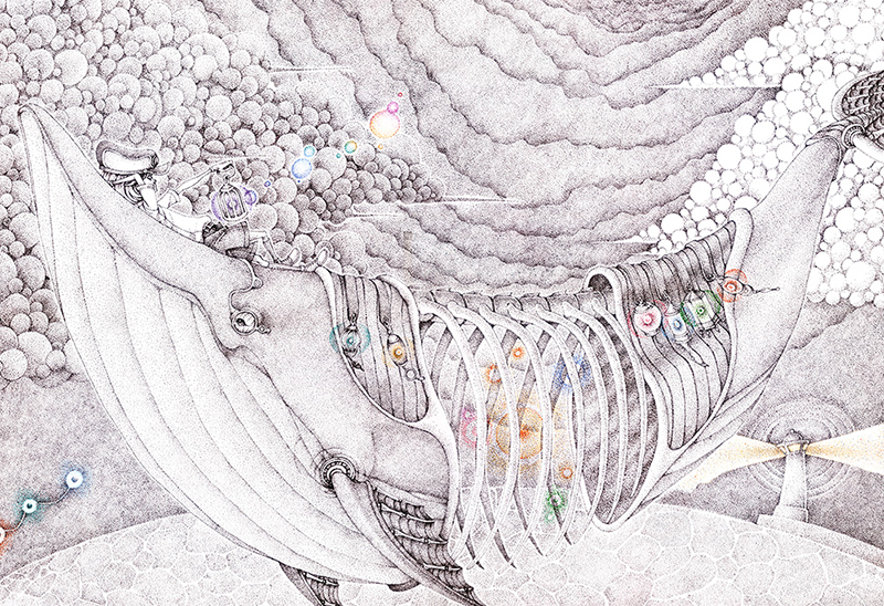 審査員評細かく描き込まれたレベルの高い作品。 大谷 佳久(IT企業代表) 點描技法呈現的空氣感與立體感十足,加上角色本身的細節讓作品的故事呈現相當出色。 Liu ray lung(アジアイラストレーター協会会長) 点描のような繊細なタッチに新鮮みを感じます。 モノクロトーンの中にカラーの色調を効果的に混ぜ込むことで、より幻想的な世界観が演出されているように思われます。 竹島 淳一(デザイン会社代表) 不思議な世界観が魅力的な作品。 あえて色を抑えて使っている点が効果的。 五十嵐 洋(クリエイティブディレクター) 全てボールペンで仕上げられた作品です。 一見メルヘンチックですが、骨が見えているクジラなど、どこか怖さも感じます。 蟹江隆広(日本イラストレーター協会 会長) NEXT PAGE |