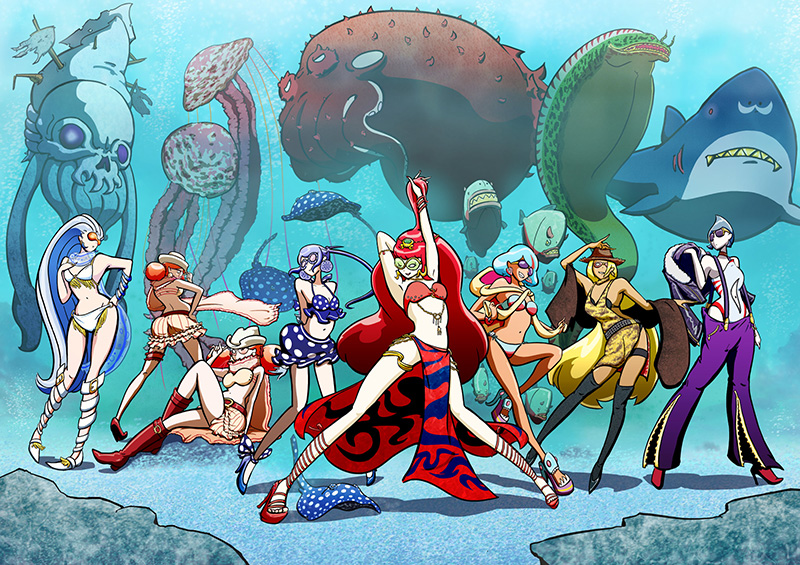 used art supplies or application softCLIP STUDIO PAINT、PhotoshopCC2017 Artist comments提出作品は、いろいろな動物(イカ、クラゲ、エイ、タコ、ピラニア、ウツボ、サメ、サル、カエル)を、ファッション化してみたものです。 |