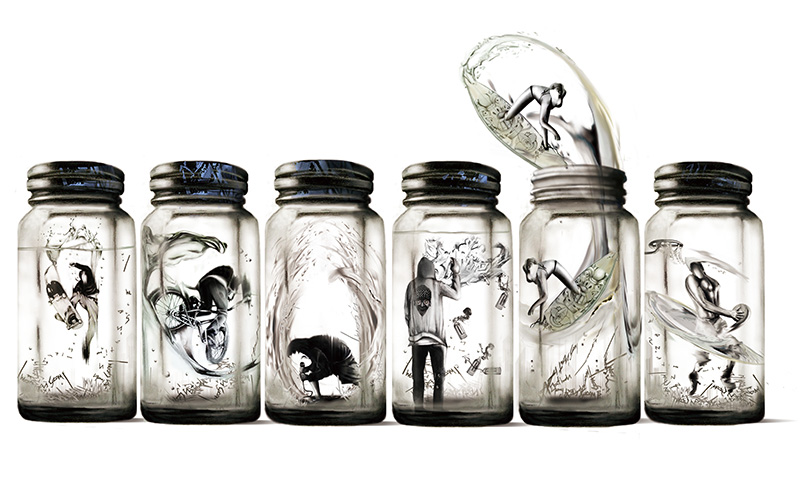 審査員評これも私が好きな作品だ。瓶の中という狭い空間に躍動感ある動き、実に面白い。 小林正直(二科会デザイン部会員) 壜のなかに詰められた小さなアクアリウム。 田中淑恵(ブックデザイナー) 新聞や雑誌の、贅沢に空間を生かした洒落の利いた広告を見ている感があります。 増本大二郎(二科会デザイン部会友) 鉛筆とPhotoshopの混合作品ですが、デジタルの良さを取り入れた魅力的な作品。 山本さと子 (版画家) アイデアの勝利だと思います。 蟹江隆広(日本イラストレーター協会 会長) |