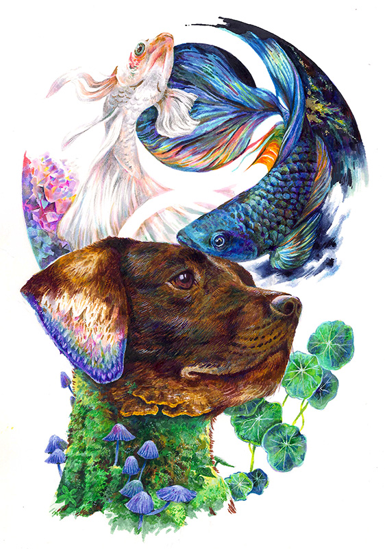 審査員評テクニックはいいのだが、何を表現したいのか私の小さなキャパではわからなかった。 小林正直(二科会デザイン部会員) 動物たちはリアルに鮮やかに描かれながら、角や額や首に植物の装飾がなされて、独自の世界を展開しています。 田中淑恵(ブックデザイナー) 動物や魚達の直向(ひたむき)な目がとても印象深い作品です。 増本大二郎(二科会デザイン部会友) ドローイング技術のとても高い作家さんだと思います。 山本さと子 (版画家) 緻密に描かれており、色彩も強くインパクトがあります。 蟹江隆広(日本イラストレーター協会 会長) |