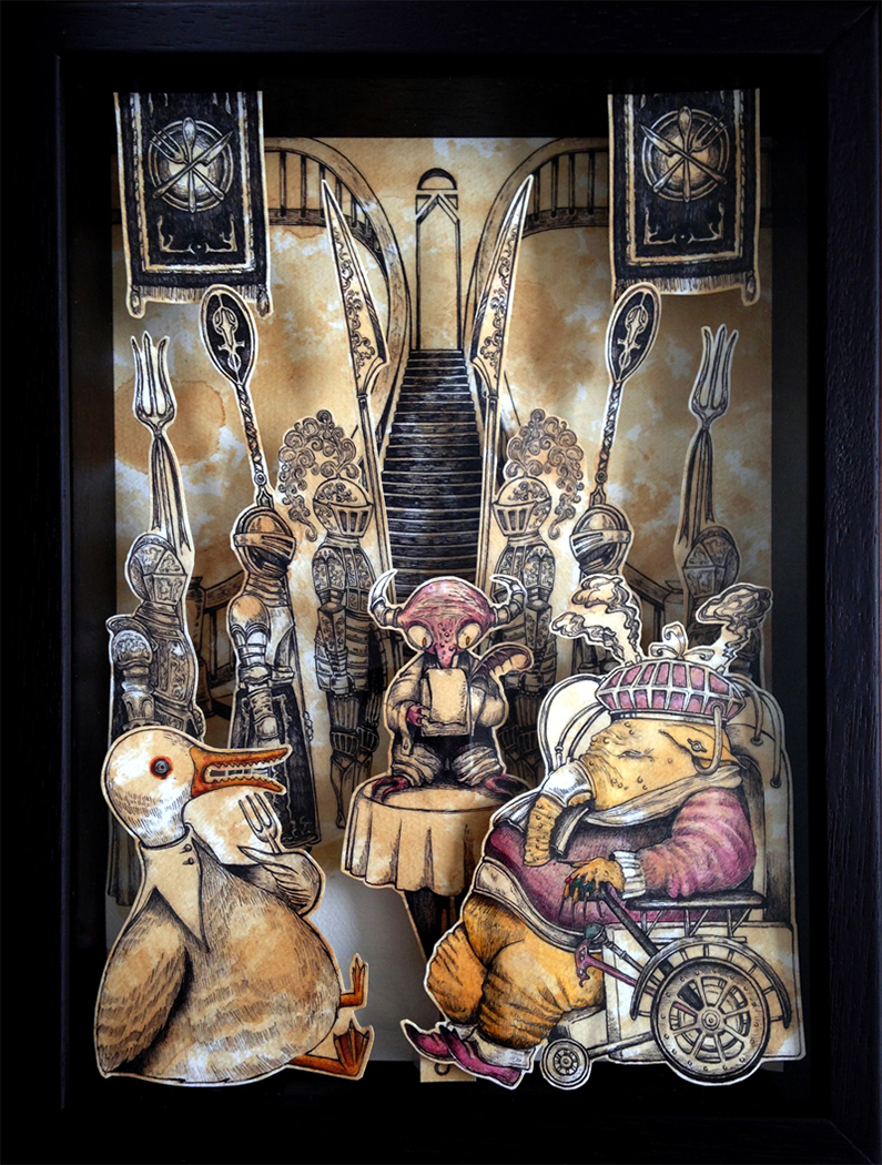 審査員評Love the use of 3D. Lisa Falkenstern The three-dimensional features resemble theatrical scenery. Joao vaz de Carvalho Great creativity and drawing skills. Greg Paprocki フレームもトリミングしてしまった方が陰影の不思議な感じがより際立ったと思います。 下山久美子 各キャラクターは平面に描かれていますが、それらを奥行きのあるボックスに配置している珍しいタイプの作品です。 蟹江隆広 |