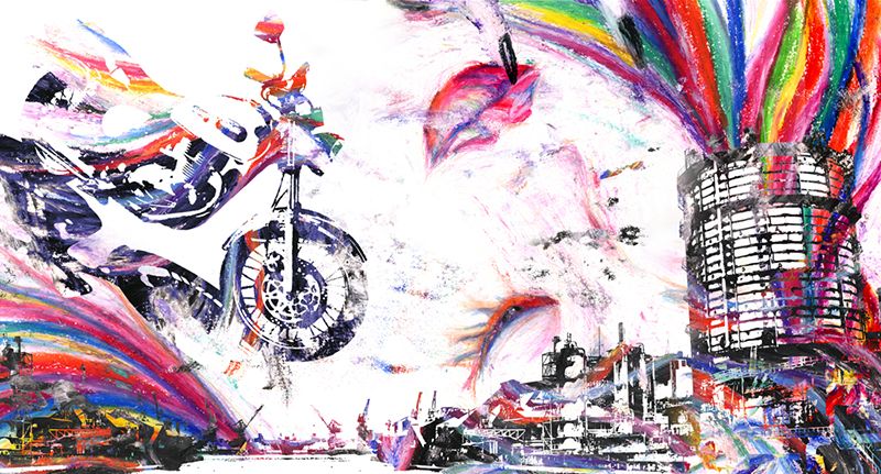 used art supplies or application softオイルパステル / 色鉛筆 / Photoshop / Illustrator Artist commentsバイクに乗っているときに見える流れていく景色や色、記憶に残ったもの等を表現した作品です。 |