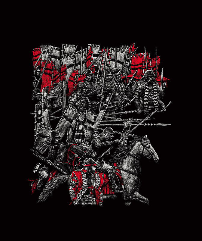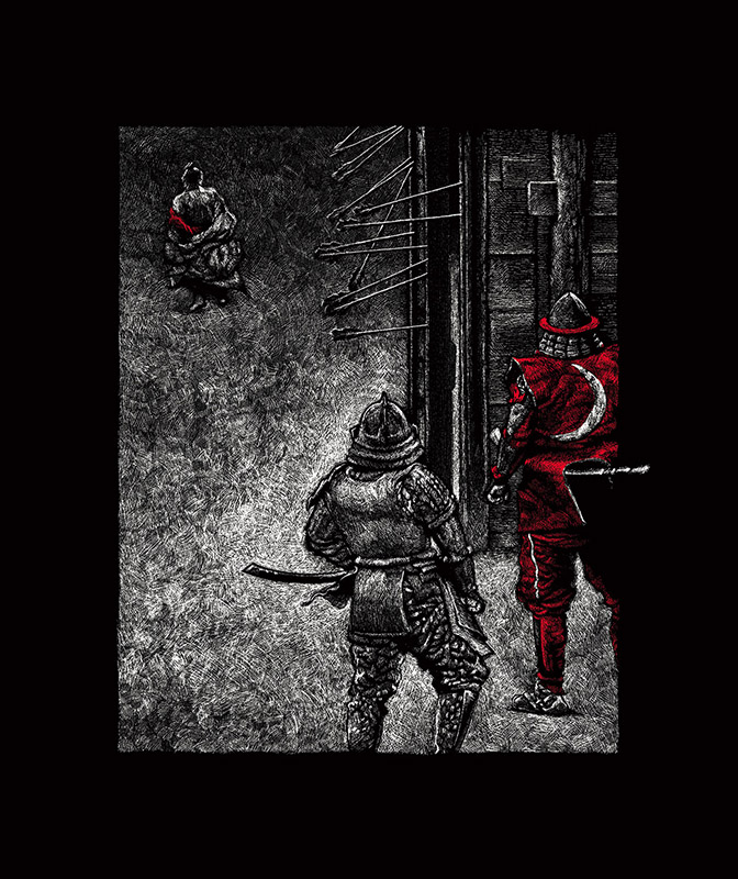 brings to life scenes of history. Steve Argyle 名作時代劇映画を彷彿とさせるワンシーン、ワンカットが連続して次々に登場し、侍達が交わす切迫した会話や合戦のざわめきが聞こえてくるようです。 増本大二郎 まずは描き込みの凄さに圧倒された。 蟹江隆広 |