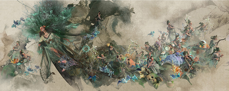 審査員評I like the way that Te chooses a long scroll-looking size of the canvas to present such large-scale perspectives of cultural and mythic narratives scenes, with his flowing rhythm of the composition. Hannah Li Te’s works are magnificent and impressive. Ailun Jiang Very massive pieces. Belle Lee The composition is beautiful and interesting from far and the closer you get, the most interesting it gets. Fatinha Ramos 過去にも何度か受賞した作家による3Dソフトなどを駆使したデジタル作品。 蟹江隆広 |