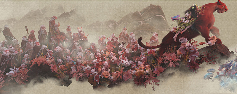 used art supplies or application softshuimo(chinese ink) zbrush, houdini, maya, substance Artist commentscombine digital art with traditional Chinese ink to express the nine song poem which is written 200 year ago. |