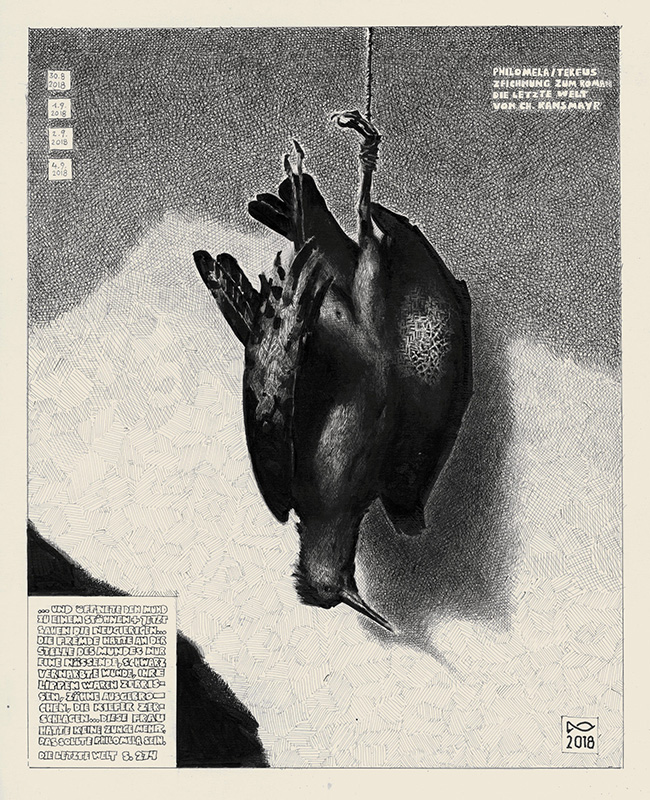 used art supplies or application softInk drawing, edding, acrylic color (white), digitally remastered Artist commentsAll drawings are inspired by literature: