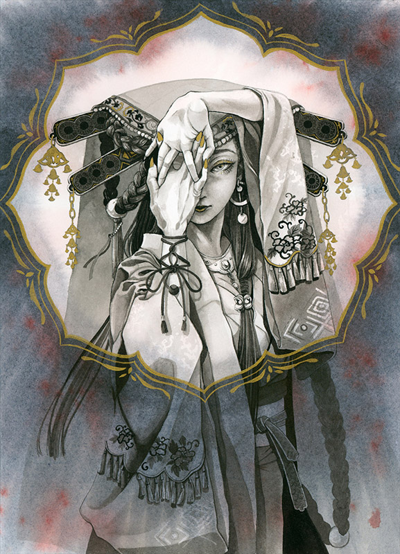 審査員評Beautiful! Hannah Li Each scene is mainly black, white and gray, and supplemented by single color, which makes my eyes shine. Ailun Jiang Love the first image. Belle Lee The drawings are great, and the composition very interesting. Fatinha Ramos トラディショナルな日本画のようにも見えるが、キャラクターは現代のアニメの影響を強く受けているように感じる。 蟹江隆広 |
