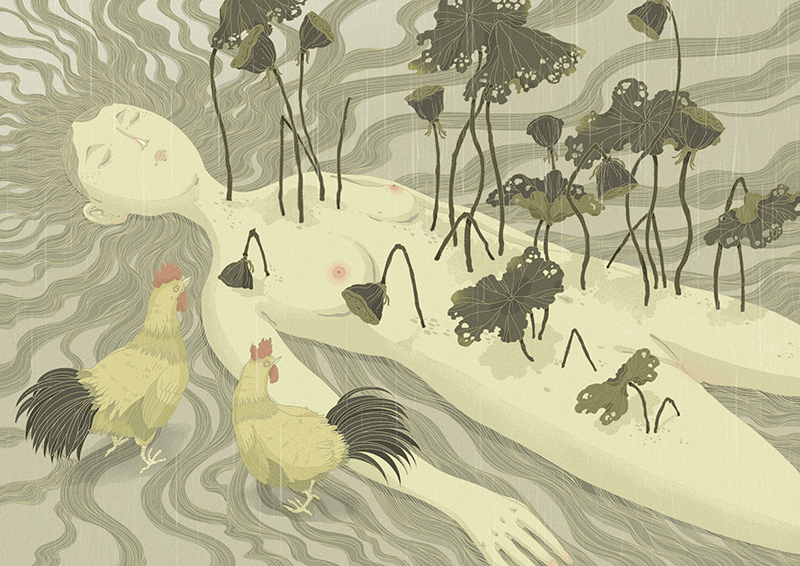 審査員評Special choices of compositions and points of view. Steven-Van-Hasten Beautiful! Amire Alaei A very delicate and soft palette of colours. Laimute-Varkalaite There's a bit of darkness in the artist's work that I find alluring such as the lotus plants growing out of the figure. The line work in the hair is done exceptionally. Tran Nguyen とても情緒的な作品だ。 蟹江隆広 |