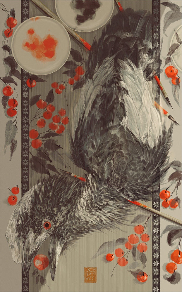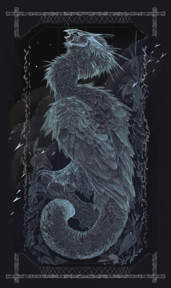 審査員評Koss's depictions of animals are incredibly detailed and lifelike. The use of traditional Asian painting styles is executed beautifully. Each animal is rendered with meticulous attention to detail, capturing their essence and bringing them to life on the canvas. Koss's skillful application of traditional techniques adds a layer of authenticity and depth to the work, making it both visually striking and culturally rich. Van Li With its dramatic composition and distinctive shape language, the artwork effectively depicts each fantastical animal. Haimeng Cao The contrast between the graphic background elements and the realistically drawn animals creates a captivating visual effect. The details of the animals highlight Koss's technical skill, and the use of traditional patterns in the background adds a unique layer to the composition. The gestures of each fantasy creatures are also great. Rita Yuwei Li Incredible shaded technique for both shadows and lights, which is perfect for the plumage and details such as the flowers and brushes in "Chiuwa Lee 5". In addition, that same richness of detail creates directions that enhance the movement of the creatures, such as the hair of the head of the creature in "Chiuwa Lee 1", increasing the dynamic impact of the work, along with the diagonal breaks in the background. A very elegant domain of his compositions, each element appears in harmony, and each work has its own way of being framed. Beautiful work by Koss, the only detail that I feel excessive is in "Chiuwa Lee 5", in the creature's orange "fabric-tail", a transparent mesh texture was given on top, which does not respect the curves of the fabric-tail and the work loses coherence. Having so much talent for making shadows, the details of the fabric-tail lose their strength with that on top, it is forced, it hides the details and causes distance, when the details should invite the contemplative approach of the artist's skill. Lucas León The works have a very strong visual impact. The artist is good at depicting imaginary animals, which look very solemn and vivid. The depiction of their feathers and muscles is very accurate and impressive. PINGNAN LU |