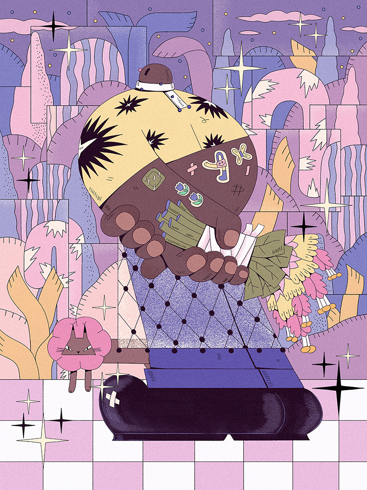 審査員評Riki's art is so much fun to look at. The intentionally broken backgrounds and all the graphic elements bring a whimsical vibe. The color palettes are playful and vibrant, adding to the overall sense of joy and creativity. Each piece feels like a delightful visual adventure, with unexpected details and lively compositions that keep the viewer engaged. Van Li The character design is highly symbolic and memorable, with each image utilizing a distinct color tone to express different moods that reflect experiences in life. Haimeng Cao The color pops out and there are so much fun little elemnts in each illustration. The way Riki express both the good and the bad moments in a graphic way is really compelling and fun to look at. Rita Yuwei Li An impeccable line work, a modern and playful color palette. He/she/x has a style with a good taste for fashion, and his/her/x characters are achievements of his/her/x identity as an artist, the are very versatile and groovy. Riki is stylish, and he/she/x knows it, because he/she/x plays very well with it. Lucas León Amazing graphic style, with very mature and beautiful shape design. The character designs are very unique and cute. Great works! PINGNAN LU |