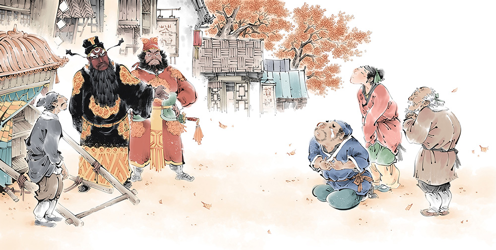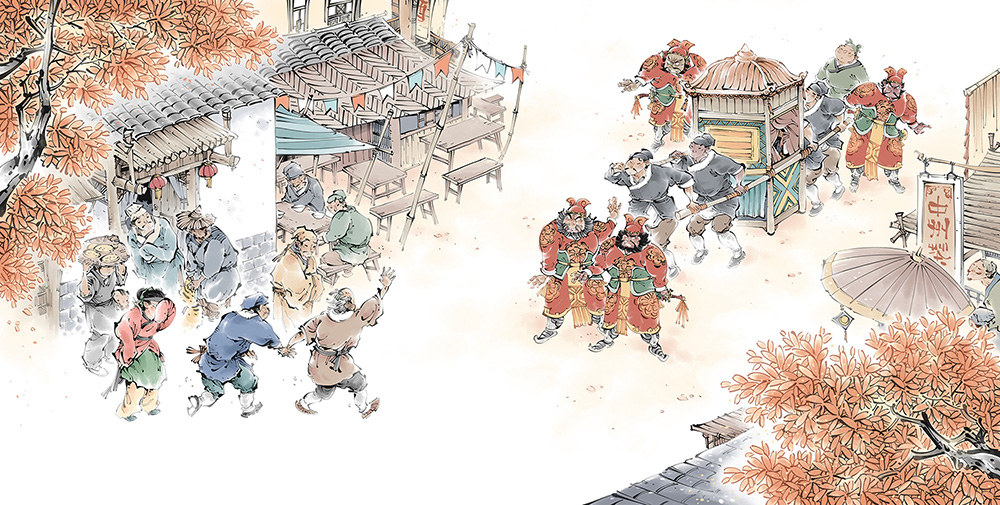 used art supplies or application softPaint Artist's commentsIt tells the story that a craftsman lost his silver in the Town God Temple, and Bao Zheng invited Lord Town God out for interrogation. Finally, the truth came out and the thief was caught. This work adopts the painting style of traditional ink painting in China, and takes children to appreciate the charm of traditional painting art. The story is about solving cases, eulogizes Bao Zheng's integrity, and shows Chinese excellent traditional culture and the wisdom of the Chinese nation. |