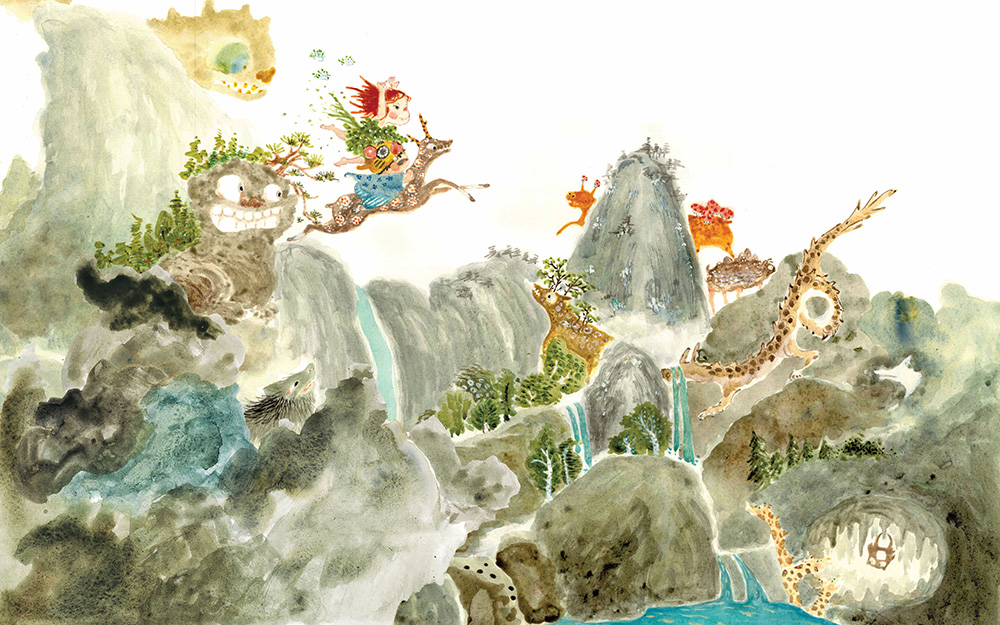 used art supplies or application softThe pictures adopt the classical Chinese landscape painting method to express the mythological atmosphere of the picture book. Artist's commentsThis artwork is the first in the Little Mountain Spirit series. Little Mountain Spirit is an illustrated children's book based on the classical Chinese literature "Nine Songs— Mountain Spirit". The living creatures in the pictures are inspired by the classical Chinese literature "The Classic of Mountains and Seas". The image hopes to show the little mountain ghost's freedom, wildness, romance, simplicity, and happiness at the beginning of its birth. |