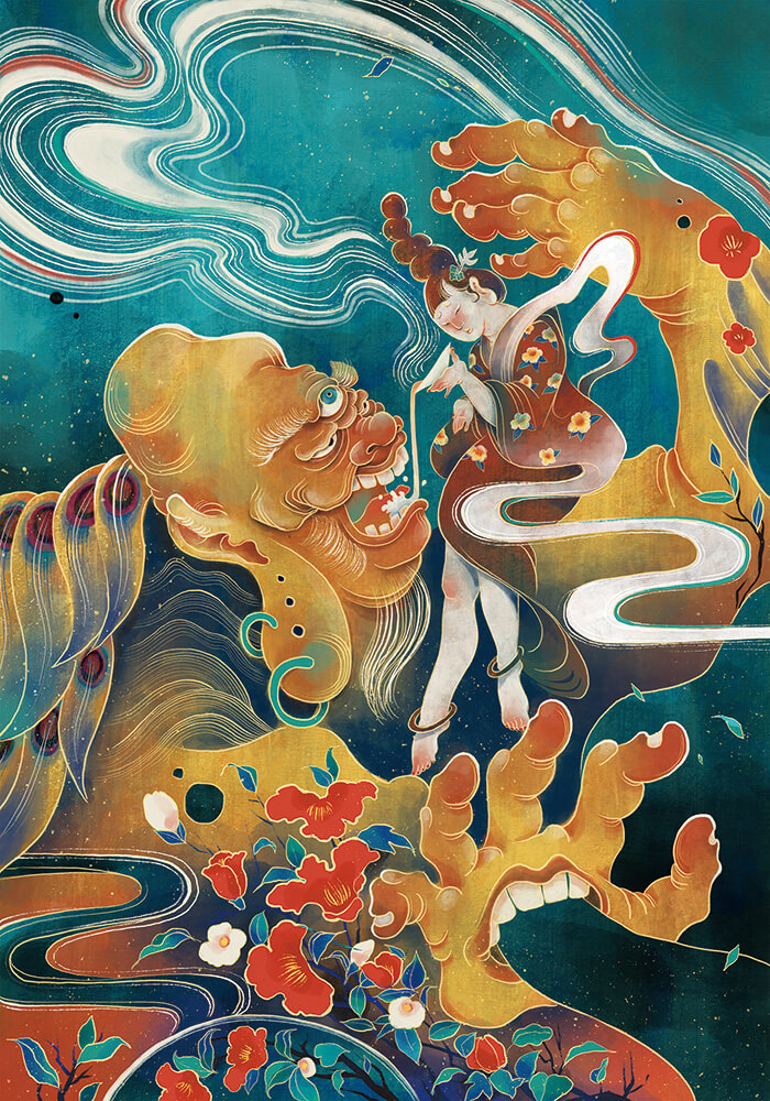 審査員評I love the uses of organic shapes in the paintings; they add such a natural, fluid feel to the work. Thr ability to mimic traditional Asian ink painting is spot-on The subtle color gradients the artist employs bring a unique and captivating flavor to the illustrations. The work stands out for its blend of traditional techniques and modern creativity, making each piece both striking and memorable. Van Li The illustrations successfully portray a dreamlike state through their composition, balance of details, color combinations, and designs. The style, reminiscent of traditional paintings, further enhances the artworks. Haimeng Cao This serie is a vivid depiction of a dream world. It's surreal and whimsical. The shape of clouds, and graphic elements are beautiflly illustrated and influenced by Chinese culture. Rita Yuwei Li It is very interesting how everything comes alive and interacts in unexpected ways with reality, losing the notion of reality in an impeccable style, where the white outline works very well, as opposed to the normal way of drawing with black, that invites to think in the inversion of what is normal or common, and enhances the atmosphere of the hallucinatory experience. The way of painting and the color palettes are, psychedelic at times, surreal at others, and all of that is in a very good domain by the skill of the artist. Beyond the chaos of what the story expresses, the way of making art with it, is in an order, harmonies and well-achieved compositions. Lucas León This series of illustrations showcases the artist's rich imagination and artistic skill. The entire set of images is imbued with a fantasy atmosphere. PINGNAN LU |