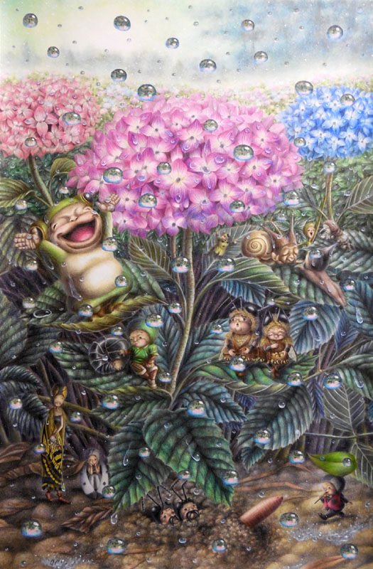 主に動物や昆虫などをキャラクター化した作品を中心に、絵本の一場面のようなストーリー性のあるイラストを描いています。