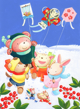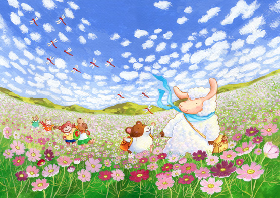 コモンズ株式会社様 サントレ絵本「鼠のお花見」他5冊 絵本挿絵